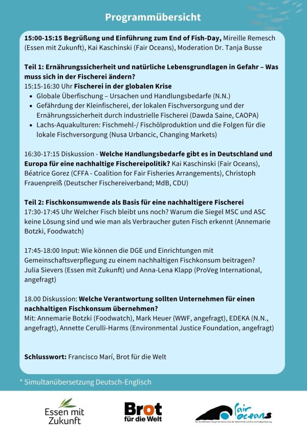 Gemeinsam mit Brot für die Welt und Fair Oceans lädt Essen mit Zukunft e. V. zum End of Fish Day ein.